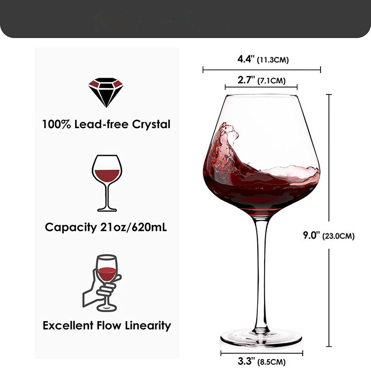 Diseñados para los amantes del vino, nuestros exquisitos vasos de cristal sin plomo mejorarán su experiencia de degustación. Cada vaso tiene una capacidad generosa de 620 ml, lo que lo convierte en el recipiente perfecto para saborear vinos tintos intensos y resaltar la plenitud de los vinos blancos.