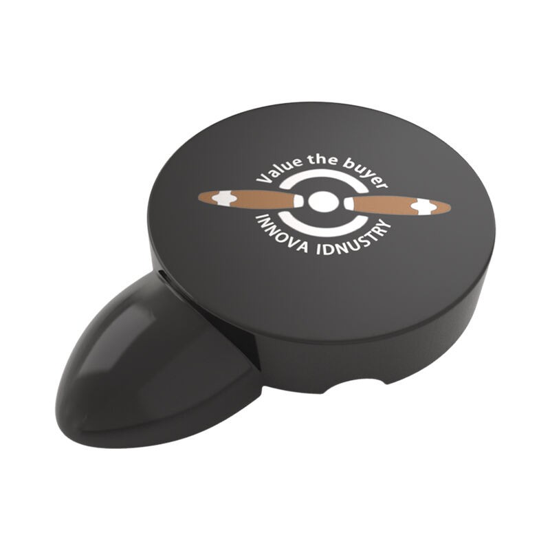 1. This unique cigar ashtray is a masterful blend of functionality and artistic expression. Its captivating asymmetrical design features two spacious ashtrays within the circular area on the left side of the classic black base, securely and elegantly accommodating two cigars.