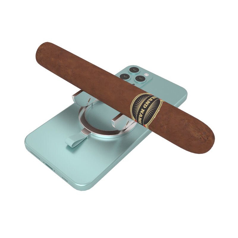 2. When closed, it functions as a stable and adjustable phone holder. Furthermore, it features a streamlined opening mechanism, with the sides folding open to reveal a specially designed holder for your cigar, providing a secure and elegant place to rest while you smoke. Both sides can be custom-engraved with your logo, making it an ideal promotional item, corporate gift, or personalized accessory for cigar clubs and events.