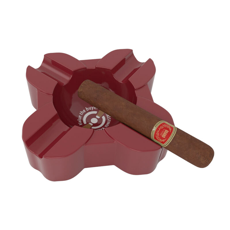 1. Featuring a bold red finish, this ashtray captivates not only with its vibrant color but also with its unique floral design. Embodying the elegance of a blooming flower, its four gracefully extending grooves resemble petals unfolding in a dazzling display. Each groove is meticulously designed to securely hold cigars of varying sizes, comfortably accommodating up to four cigars simultaneously, making it ideal for intimate gatherings or personal gatherings.